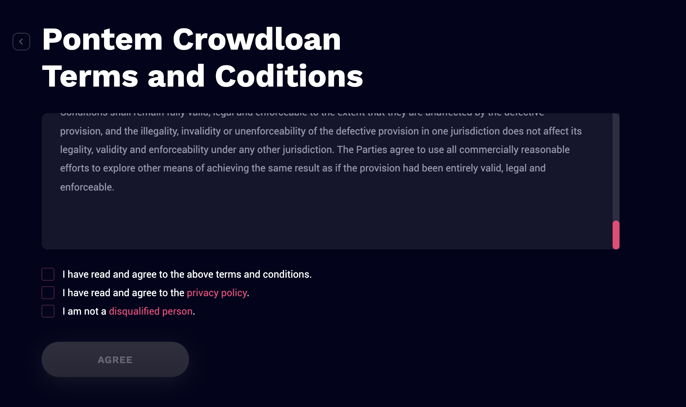 5) Terms and conditions 스크롤바를 맨밑까지 내려야 모두 체크할수있음.