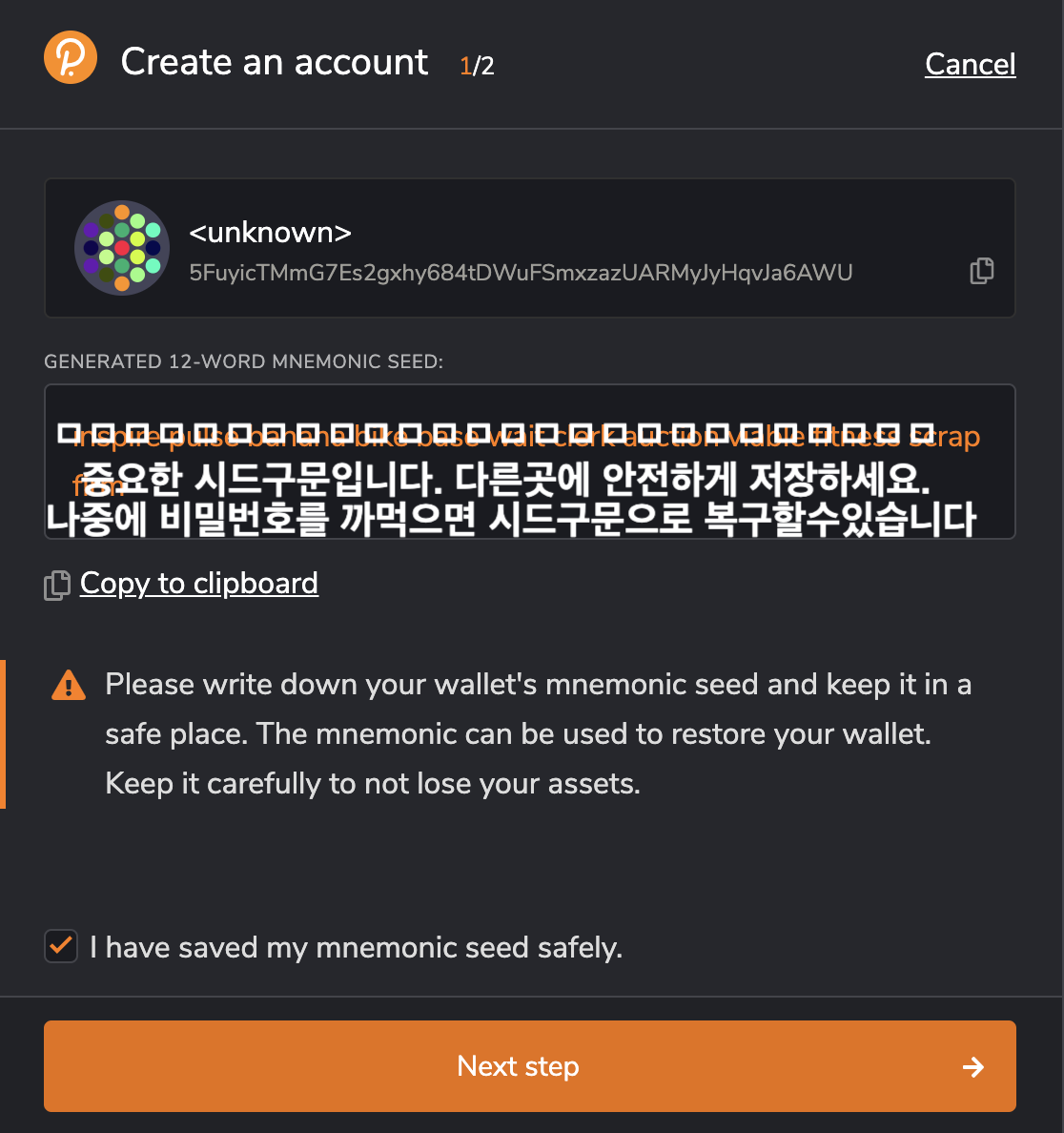 나중에 시드구문으로 잃어버린 지갑을 찾을수있음.